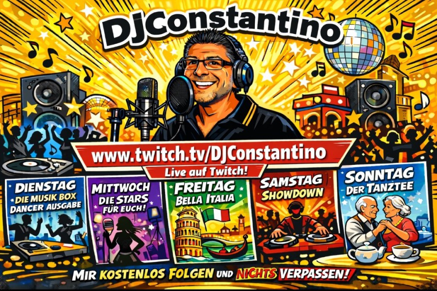 Mehr Infos findet Ihr auf meinem Kanal unter Zeitplan...! www.twitch.tv/djconstantino
